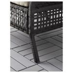 Мебель из пластика под ротанг и устойчивого к появлению ржавчины алюминия отличается прочностью, простотой в уходе и выдержит любые капризы погоды.