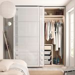 Подсветка гардероба ПАКС, размещенная за панелью из матового стекла, создаст в комнате мягкое освещение.