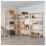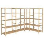 Необработанный массив дерева – прочный натуральный материал, который можно покрыть маслом или воском для повышения износостойкости. Полки можно устанавливать на разном уровне в соответствии с потребностями хранения.