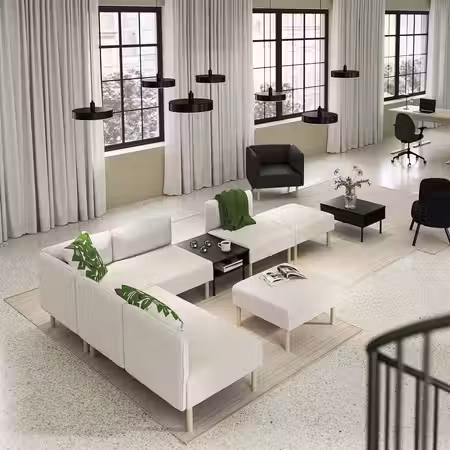 Модули одинаково хорошо смотрятся со всех сторон, поэтому диван можно придвинуть к стене или поставить по центру комнаты.