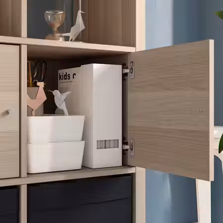 Столешницу и ножки можно прикрепить к стеллажу КАЛЛАКС при помощи фурнитуры ИНЛЭГГ.