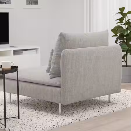 Модули одинаково хорошо смотрятся со всех сторон, поэтому диван можно придвинуть к стене или поставить по центру комнаты.