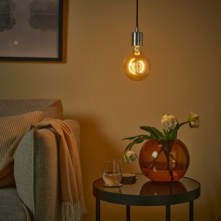 Создайте индивидуальный подвесной светильник, дополнив этот воздушный абажур декоративной светодиодной лампочкой и подходящим шнуром-подвесом.