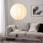 Этот подвесной светильник с круглым текстильным абажуром белого цвета и регулируемым шнуром мягко рассеивает свет, создавая уютную атмосферу.
