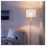 Создайте напольный или подвесной светильник, не похожий на другие, дополнив понравившийся абажур основанием или шнуром-подвесом на свое усмотрение. Создает декоративное освещение в комнате; свет проходит через перфорированный абажур.