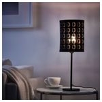 Создайте подвесной светильник или настольную лампу, не похожие на другие, дополнив понравившийся абажур основанием на свое усмотрение. Создает декоративное освещение в комнате; свет проходит через перфорированный абажур.