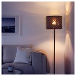 Создайте напольный или подвесной светильник, не похожий на другие, дополнив понравившийся абажур основанием или шнуром-подвесом на свое усмотрение. Создает декоративное освещение в комнате; свет проходит через перфорированный абажур.