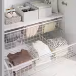 К внутренним органайзерам HJÄLPA относятся рейлинги, корзины, крючки и полки, которые позволяют максимально эффективно использовать пространство для хранения вещей.
