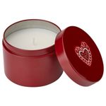 Свечная чашка/ Крышка: Луженая сталь, Краска, Прозрачный лак Свеча: парафиновый воск, соевый воск