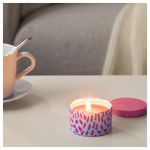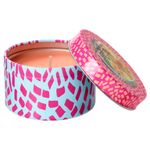 Нежный и мягкий аромат маракуйи. Свеча с приятным ароматом создаст в комнате располагающую атмосферу. Когда свеча прогорит, металлическую баночку с ярким принтом можно использовать для хранения различных мелочей.