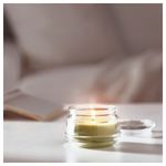 Приятный аромат летнего луга и мягкий свет свечи создают располагающую атмосферу. Цвет свечи хорошо виден, а свет красиво преломляется через прозрачное стекло. Свеча сохранит красивый цвет в течение всего времени горения.