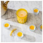 Минимум 50 % воска в этом товаре изготовлено из возобновляемого растительного сырья. Когда свеча прогорит, стеклянную емкость можно использовать для хранения различных мелочей или в качестве подсвечника для греющей свечи.