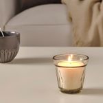 Ароматическая свеча в стакане, ревень бузина/бежевый 8 см IKEA VÄLDOFT ВЭЛЬДОФТ включает в себя следующие материалы: