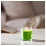 Приятный аромат зеленого яблока и теплый свет свечи создают располагающую атмосферу. Свеча сохранит красивый цвет в течение всего времени горения. Вы легко измените внешний вид свечи в стеклянном стакане с помощью украшения ВАККЕРТ.