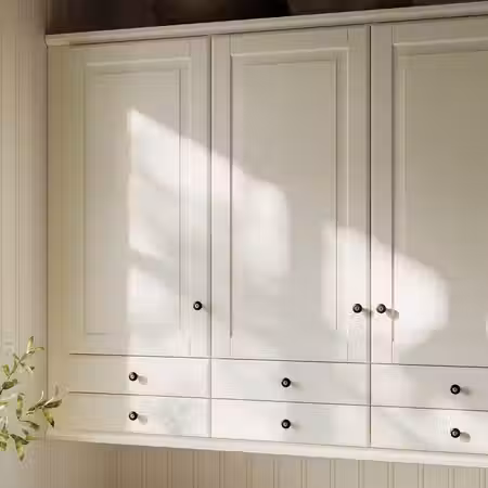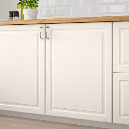 Классический дизайн белой с оттенком дверцы БУДБИН подчеркнет традиционную выразительность кухни.