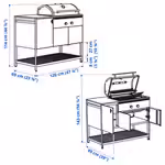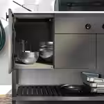На полках под грилем есть место для кухонных принадлежностей и сервировочной посуды, чтобы сразу подать готовое блюдо на стол.