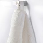 Удивительно мягкое и отличное впитывающее влагу банное полотенце с широкой каймой прекрасно смотрится в сложенном виде или висящим на крючке.