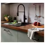 В ИКЕА мы всегда стараемся максимально эффективно использовать ресурсы. Для столешниц с верхним слоем древесины мы объединили традиционные ремесленные техники и современные методы производства. Такие столешницы проще устанавливаются, более прочны и устойчивы к воздействию влаги, чем столешницы из массива. Кроме того, мы используем все дерево, даже кривые сучки и маленькие веточки, а значит, бережем природные ресурсы.