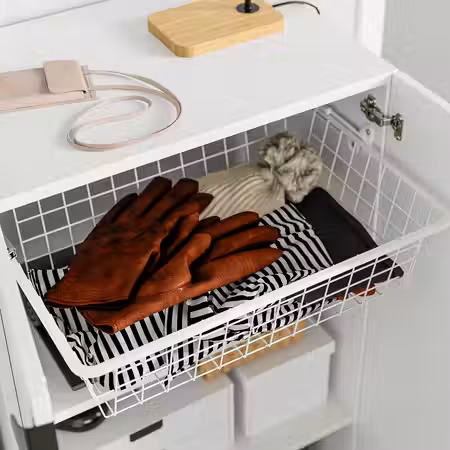 Проволочная корзина обеспечивает циркуляцию воздуха, благодаря чему одежда и белье дольше сохранят свежесть.
