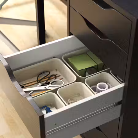 Орнамент и стиль органайзеров прекрасно сочетаются с дизайном мебели ХАУГА и ИДАНЭС, но, конечно, эти аксессуары можно использовать для организации хранения в любой другой мебели.
