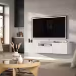 Благодаря нескольким отверстиям на задней панели тумбы под ТВ провода от телевизора и других устройств всегда будут под рукой, но не на виду.