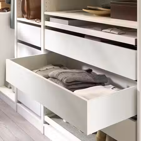 В этом гардеробе найдется отделение для всего на свете. Он подходит для тех, кто привык точно знать, где лежит каждая вещь независимо от ее размера, и при этом сохранять хороший обзор. Демонстрируйте свой идеальный порядок всем