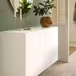 Верхняя панель из закаленного белого стекла придает решению для хранения более гармоничный вид, если оно состоит из нескольких модулей.