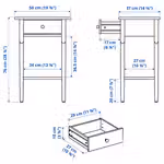 Прикроватная тумба оснащена верхней полкой, удобным выдвижным ящиком и открытым отделением для хранения.