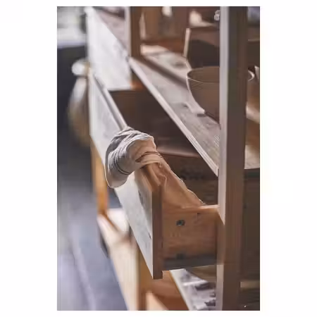 Верхняя панель/Боковая панель/Спинка/Фронтальная панель ящика, Полка: Массив сосны, Морилка, Прозрачный акриловый лак