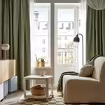 Длина 300 см позволяет повесить гардину под потолком и визуально увеличить высоту, либо можно повесить её над окном и оставить ниспадать на пол.
