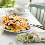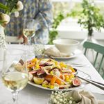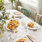 Классический дизайн с необычным акцентом — волнистым цветным краем, придающим сервировке стола жизнерадостную атмосферу.