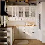 Филенчатая дверца БУДБИН с широкой рамой подчеркнет традиционный стиль кухни.