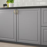 Серая дверца БУДБИН с широкой рамой подчеркнет традиционный стиль вашей кухни, добавив в интерьер сдержанный изящный колорит.