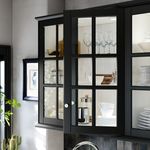 За ними вы можете выставить красивую посуду, а также установить подсветку, чтобы создать в кухне приятную атмосферу.