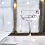 Широкий и низкий бокал на высокой ножке для праздничной подачи шампанского.