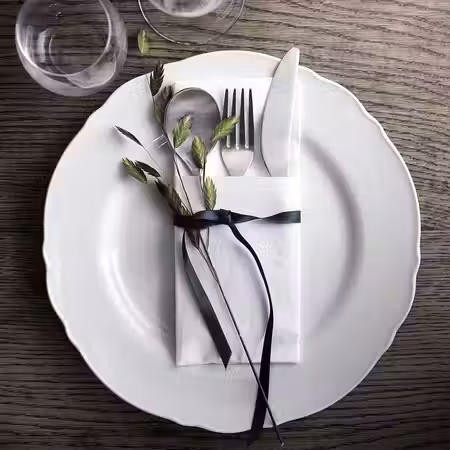 Фарфоровую посуду этой серии отличает элегантный волнистый край.