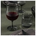 Прочный стеклянный бокал серого цвета можно мыть в посудомоечной машине. Рифленое стекло преломляет свет, подчеркивая элегантную форму.