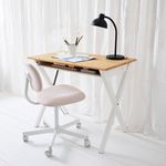 Этот письменный стол со столешницей из светлого дерева и основанием со скрещёнными ножками выглядит традиционно, и при этом всё равно стильно.