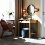 Подобно ожерелью из мелкого жемчуга, этот настенный светильник красиво обрамляет зеркало в спальне или прихожей и дает яркий рассеянный свет.