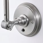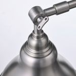 Брашированная поверхность напоминает олово, провода выполнены в черном цвете, а штатив и абажур легко регулируются.
