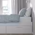 «Организация компактного хранения — это настоящее искусство. Серия функциональной мебели для спальни БРИМНЭС без труда решает проблему небольших помещений. Кровать с вместительными ящиками и изголовьем с полками для книг и журналов. Съемные полки позволят максимально эффективно использовать внутреннее пространство гардероба. Мебель можно использовать в комбинации или по отдельности. Надеемся, что благодаря мебели этой серии ваша спальня станет удобнее и функциональнее».