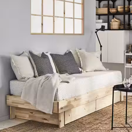 В двух вместительных ящиках можно хранить одеяла, подушки и постельное белье.