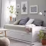 Днем на кушетке удобно сидеть, а ночью она легко превратится в односпальную или двуспальную кровать.