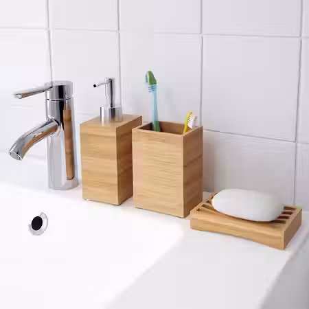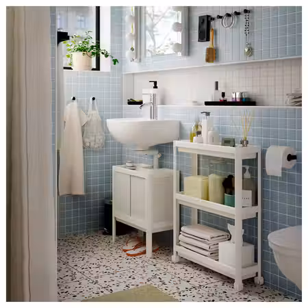 Стеллаж поместится в самую маленькую ванную, решив при этом проблему хранения различных мелочей и туалетных принадлежностей, а также шампуней, мыла и кремов.