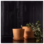 Терракота — разновидность неглазурованной керамики. Это жаропрочный и долговечный материал, сырьем для изготовления которого является глина определенного вида. Терракота уже не одну тысячу лет используется человечеством для создания предметов повседневного использования. После обжига этот материал приобретает характерный коричнево-красный оттенок и пористую фактуру поверхности. Мы в ИКЕА производим из терракоты преимущественно цветочные горшки и кашпо.