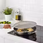 Подходит для большинства сковород диаметром до 32 см.