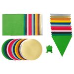 В набор входит: 78 цветных листов для оригами/60 г. 13 цветов и 3 формы: треугольник 25x25 см, круг диам. 25 см и квадрат 25x25 см, по 2 шт.