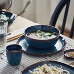 Глазурованная миска насыщенного синего цвета с золотисто-коричневым ободком станет достойной оправой для ваших кулинарных шедевров.