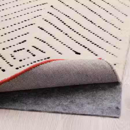 Линии образуют ромбовидный рисунок, который по краям обрамляют яркие красные полоски.