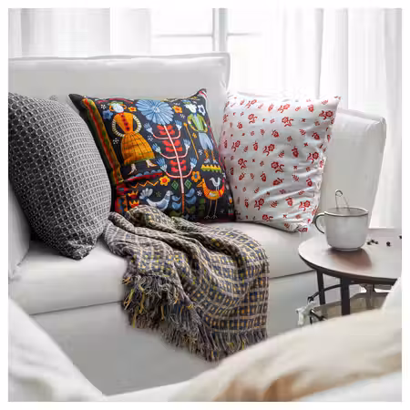 Чехол на подушку ЛАГЕРПОППЭЛЬ антрацитового цвета с текстурированной поверхностью, матовым блеском и окантовкой, которая подчеркивает стиль и сохраняет форму подушки.